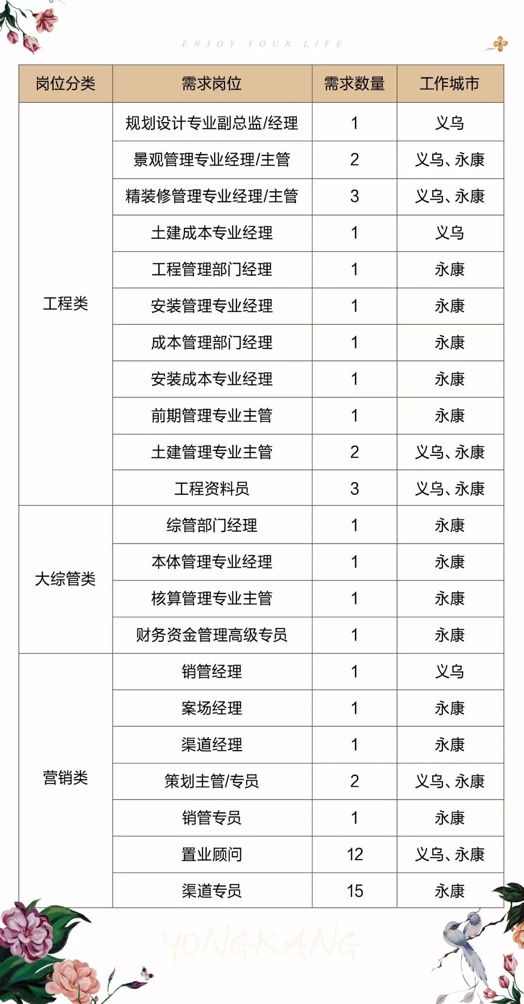 如果你与绿城志同道合,如果你有性格、有想法、有激情、有梦想,如果你渴望美好、依旧前行向上,我们期待你能成为绿城的一员,共创美好,共赴理想,为永康绘写更美好的生活篇章。